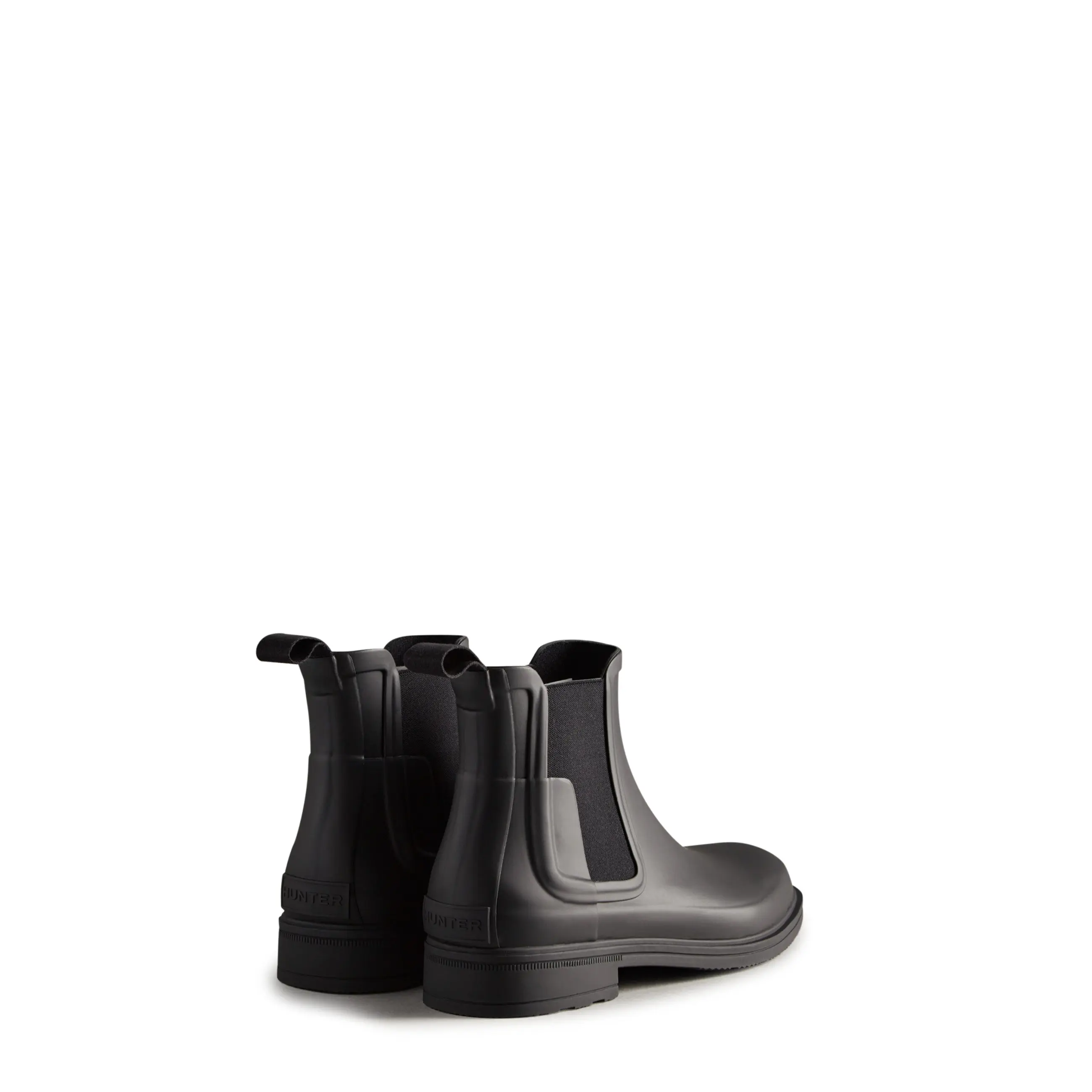 The Men's Refined Chelsea features a tailored shape and molded footbed for everyday wear. These Chelsea boots are ready for rain and handcrafted from natural rubber which has been vulcanized for superior protection. Retaining the iconic features of the traditional Chelsea, elasticated gussets and a nylon pull tab for ease of entry. The signature Hunter tread pattern and comfortable 100% recycled polyester lining completes the design. This boot is 100% waterproof.